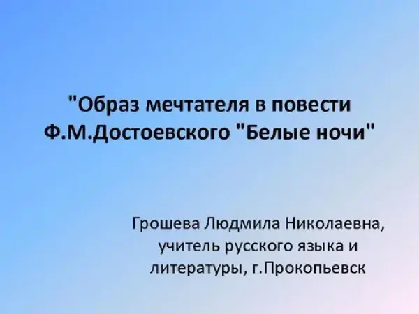 Открытый урок литературы по теме «Образ мечтателя в повести Ф.М. Достоевского "Белые ночи"». 9-й класс