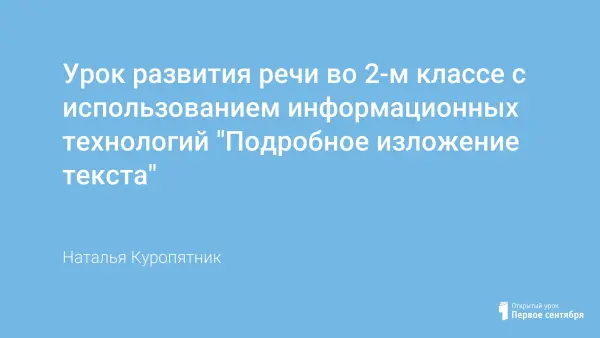 Устный и письменный пересказ текста - одна из наиболее важных форм работы на уроках русского языка в начальной школе. Поэтому считаю эффективным при написании подробного изложения использование текста, способного заинтересовать детей и функционировать в подходящей реальной ситуации. Кроме того, разнообразные виды составления плана текста изложения способны обеспечить индивидуально-дифференцированный подход на уроке и создать "ситуацию успеха" для каждого ученика.
