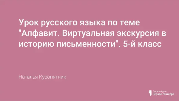 Урок русского языка проведен в форме виртуальной экскурсии, расскажет об истории письменности, какие необычные способы передачи информации использовали люди до появления алфавита. В ходе урока ребята узнают о происхождении алфавита, познакомятся с его особенностями. Детям будет интересно узнать историю происхождения книг, какие материалы для письма использовали в разное время.