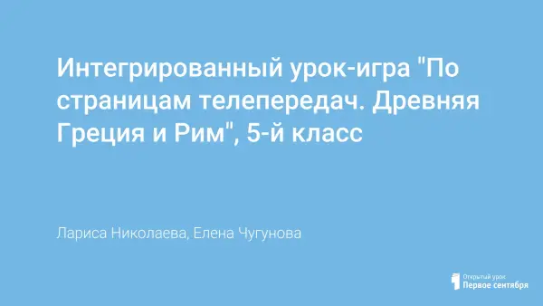 Представлен интегрированный урок-игра "По страницам телепередач. Древняя Греция и Рим" по истории и технологии для учащихся 5-го класса. Использование интеграции учебных дисциплин, игровой формы проведения урока, компьютерной презентации позволяет углубить знания учащихся по культуре, интерьеру, одежде, кулинарии Древней Греции и Рима, способствует развитию творческих способностей, совершенствованию практических навыков.