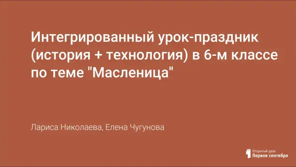 Данный урок продолжает серию интегрированных уроков по истории и технологии. На уроке гармонично объединён фактический и теоретический материал. Учащиеся знакомятся с народными традициями и обрядами, учатся приготовлению блинов по различным рецептам, разбираются в родственных связях, разыгрывают представления.