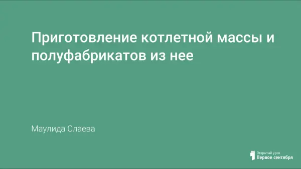 Открытый урок производственного обучения по профессии повар формирует первоначальные навыки по приготовлению полуфабрикатов из котлетной массы. Учащиеся приобретают практические навыки в работе с нормативно-технологической документацией, навык самостоятельной работы, развивают координацию движений, скорость и технику при работе с инструментами. Воспитывается аккуратность, ответственность, трудолюбие.