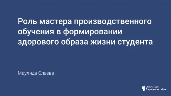 Доклад посвящен роли и целям мастера профессионального обучения в свете современных форматов образования.