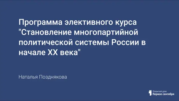 Курс направлен на расширение знаний учащихся по истории становления многопартийной политической системы России XX в. и формирование навыков политической культуры.