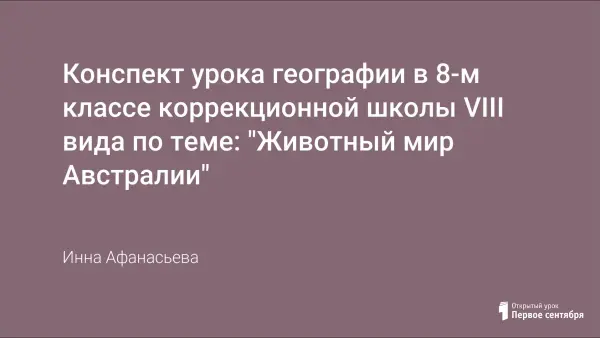 Урок географии в 8-м классе закрепляет знания о растительном и животном мире Австралии, знакомит с особенностями внешнего вида и образа жизни типичных представителей фауны.