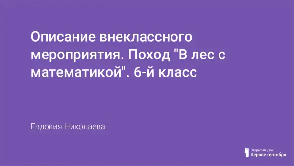 Внекласное мерояприятие по математике для 6-го класса. На нем происходит развитие интереса и любви к математике, сообразительности, расширение кругозора учащихся; воспитание любви к родной природе и бережного отношения к ней.