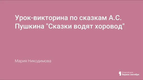 Представлен конспект урока-викторины по сказкам А.С. Пушкина.