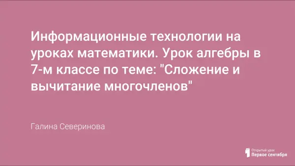 Урок алгебры для 7-го класса. На уроке закрепляется умение выполнять сложение и вычитание многочленов, развивается умение приводить подобные слагаемые.