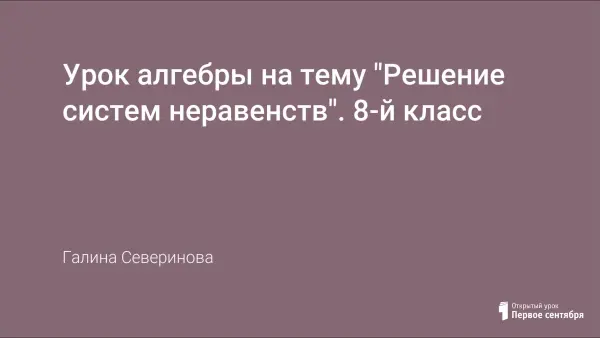 Урок алгебры в 8-м классе проводится с целью повторения и систематизации изученного материала по темам “Решение систем неравенств” и “Решение неравенств”, формирования приемов логического мышления, умения анализировать, развития интереса к предмету, воспитания ответственного отношения к учебному труду, умения преодолевать учебные трудности, учиться самоконтролю и взаимоконтролю. Используется презентация, преподавание ведется по учебнику под редакцией С.А.Теляковского.