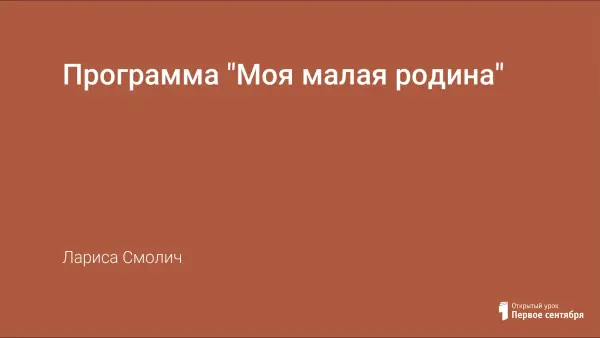 Программа "Моя малая родина" адресована учащимся начальных классов, а также может быть частично использована в среднем звене. В ходе прохождения программы обучающиеся посещают урочные и внеклассные занятия, экскурсии. Особое место отводится самостоятельной работе при выполнении заданий творческого характера. Оценка знаний, умений, навыков проводится с помощью итогового теста, который включает вопросы по основным разделам курса. Курс завершается выполнением творческих работ в IV четверти. Программа курса "Моя малая родина" рассчитана на 34 часа лекционно-практических занятий во 2-м классе.