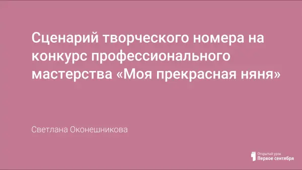Представлен сценарий творческого номера на конкурс профессионального мастерства «Моя прекрасная няня».