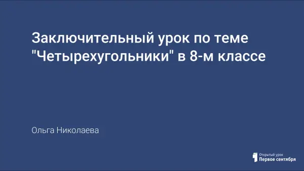 Заключительный урок по теме проводится в форме дидактической игры. Основной целью данного урока является повторение и систематизация учебного материала по теме «Четырехугольники». На уроке применяются различные виды контроля за знаниями учащихся,различные формы работы учеников. Развивается математическая речь, воображение, тренируется память учащихся.