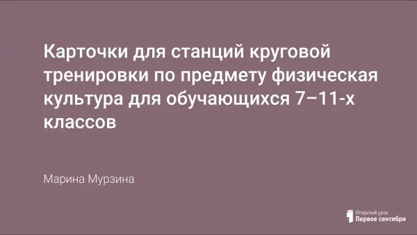 Карточки для станций круговой тренировки содержат теоретический материал и практическое задание. Адресованы для практического применения учителям, студентам факультета физической культуры для знакомства обучающихся с основными знаниями по предмету физическая культура.