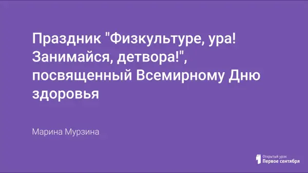 Программа проведения спортивного праздника, посвященного всемирному Дню здоровья. Мероприятие проводится с целью пропаганды здорового образа жизни. В программу праздника включены конкурсы с отгадыванием загадок, слов-терминов, стихов, рисунков, инсценировок сказок, что позволяет вовлечь всех учащихся в действия и способствует повышению интереса к занятиям физической культурой и спортом.