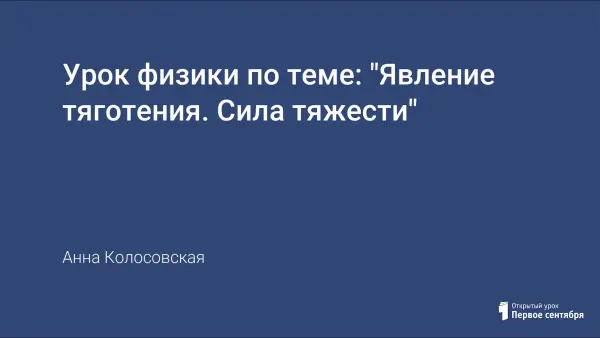 Учителем представлен урок физики в 7-м классе по теме "Явление тяготения. Сила тяжести" c использованием средств информационных технологий: мультимедийных программ, презентаций.