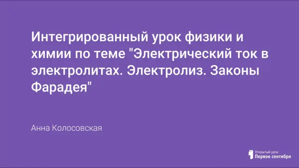 Интегрированный урок физики и химии по теме "Электрический ток в электролитах. Электролиз. Законы Фарадея"