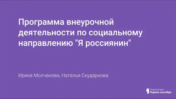 Программа внеурочной деятельности по социальному направлению "Я россиянин"
