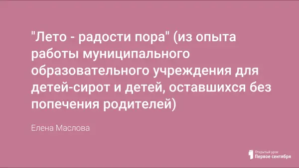 Система работы по организации летнего отдыха воспитанников детского дома-школы. Путешествия по летним дорогам здоровья, открытий, созидания и творчества.