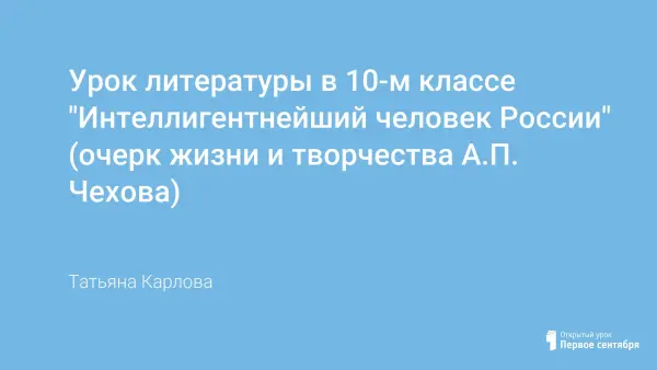 Задачи урока: вызвать у учащихся интерес к личности и творчеству А.П. Чехова; расширить и углубить представление учеников о ранее изученных произведениях писателя; развивать мышление учащихся, их творческое воображение и эстетическое восприятие; воспитывать в учениках нравственные качества на примере жизни писателя.