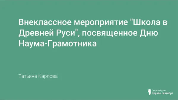 Внеклассное мероприятие, посвящённое Дню Наума-Грамотника, подготовлено старшеклассниками для учеников начальных и 5—6-х классов. Проведение мероприятия поможет младшим школьникам узнать, кто такой Наум и почему его назвали Грамотником, а также представить, как учились дети в Древней Руси.