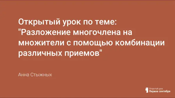 Цели урока: систематизировать, расширить и углубить знания, умения учащихся применять различные способы разложения многочлена на множители и их комбинации; способствовать развитию наблюдательности, умения анализировать, сравнивать и делать выводы.