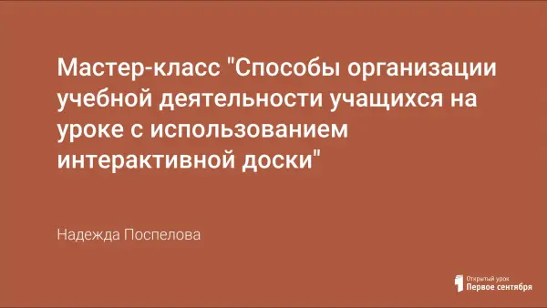 Мастер-класс позволил сделать анализ технических средств, таких как: обычная доска и мел (маркерная доска и фломастер), проектор и экран, интерактивная доска; выявил возможности интерактивной доски через предлагаемые упражнения и задания; продемонстрировал собственные наработки авторов; показал возможность участникам группы создать свои слайды, используя инструментарий программы "Notebook 10", с последующей их демонстрацией; выявил преимущества работы с интерактивной доской.