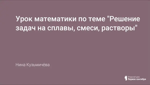 Открытый урок по теме "Решение задач на проценты, сплавы, смеси" завершает изучение элективного курса "Решение задач на проценты, смеси, сплавы". Тип урока - систематизация и обобщение знаний. Данный урок имеет целью систематизировать, расширить и углубить знания, умения и навыки учащихся, связанные с понятием процента, повторить способы решения задач на сплавы и смеси.