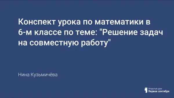 Цель данного урока – познакомить учащихся с задачами на совместную работу, разъяснить введение единицы, учить решать задачи различного уровня сложности.