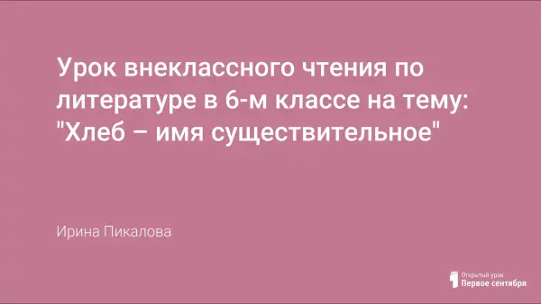 Урок внеклассного чтения по литературе в 6-м классе, на котором поднимается проблема отношения к хлебу в современном обществе. На примере различных произведений, не включённых в школьную программу, учащимся демонстрируется огромное значение, которое имеет хлеб в нашей жизни.