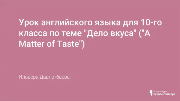 Урок английского языка в10-м классе посвящен развитию коммуникативной компетенции учащихся в основных видах речевой деятельности через учебный материал темы «Дело вкуса!». Для организации работы на уроке используются индивидуальная, парная и фронтальная формы работы и приемы побуждающего диалога, подведения к постановке учебной проблемы. На разных этапах урока учителями используются словесный, наглядно-иллюстративный, проблемный, частично-поисковый, практический методы.
