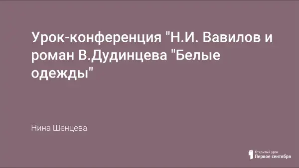 Цель урока: изучить биографию Н.И.Вавилова; показать взаимосвязь между основными проблемами романа и жизнью ученого.