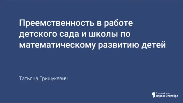 Главное – учить детей поиску правильного ответа, когда педагог лишь направляет их рассуждения в нужное русло. Кроме того, познавательные интересы детей расширяет использование развивающих дидактических средств, метода моделирования, занимательного математического материала. Раскрыв сущность преемственности, следует ещё раз отметить двусторонний характер этого процесса: с одной стороны, педагоги детского сада должны учитывать требования школы, с другой – педагоги школы могут использовать математические знания, приобретённые детьми в детском саду, и наиболее актуальные формы и методы работы на протяжении дошкольного и младшего школьного возраста.