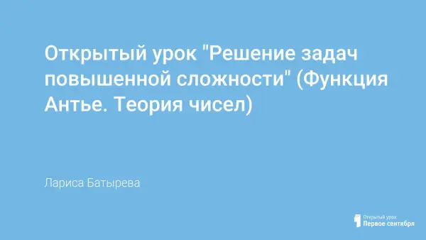 Открытый урок "Решение задач повышенной сложности" (Функция Антье. Теория чисел)