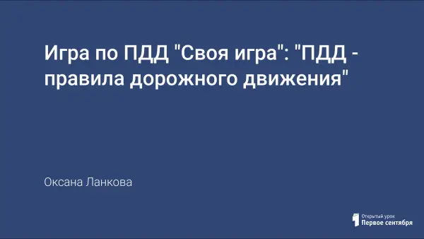 Основная идея урока - в форме игры - аналога телевизионной передачи "Своя игра". Цель - проверить знание правил дорожного движения у учащихся младших классов, а также познакомить их с этими правилами.