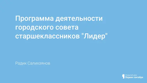 Городской cовет старшеклассников является объединением учащихся общеобразовательных учреждений различных типов и видов, в которое самостоятельно или вместе с взрослыми добровольно входят несовершеннолетние граждане для совместной деятельности, удовлетворяющей их социальные потребности и интересы.