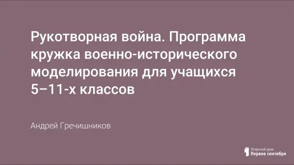 При создании моделей и диорам школьники открывают для себя новые страницы истории родной страны, знакомятся с героическим прошлым России. Авторская программа по стендовому военно-историческому моделированию разработана учителем технологии на основе материалов специальных изданий, периодической печати. Список литературы прилагается. Программа рассчитана на три года обучения в разновозрастных группах.