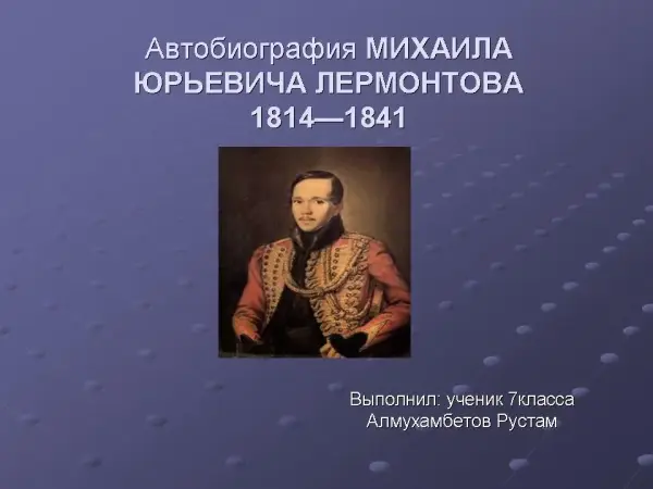 Автор знакомит учащихся с биографией М.Ю. Лермонтова. Знакомит с известными портретами поэта. Ученики совершенствуют навыки монологической речи, развивают умения систематизировать материал.