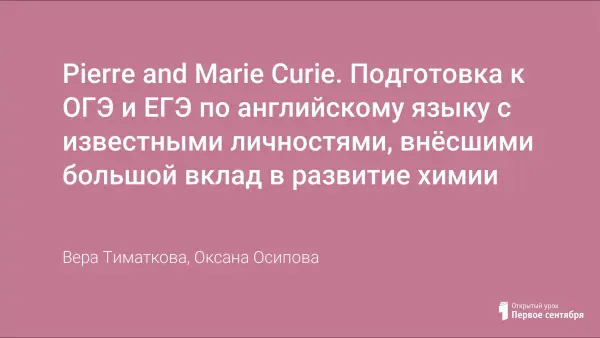 Pierre and Marie Curie. Подготовка к ОГЭ и ЕГЭ по английскому языку с известными личностями, внёсшими большой вклад в развитие химии