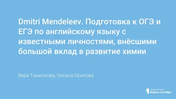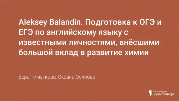 Aleksey Balandin. Подготовка к ОГЭ и ЕГЭ по английскому языку с известными личностями, внёсшими большой вклад в развитие химии