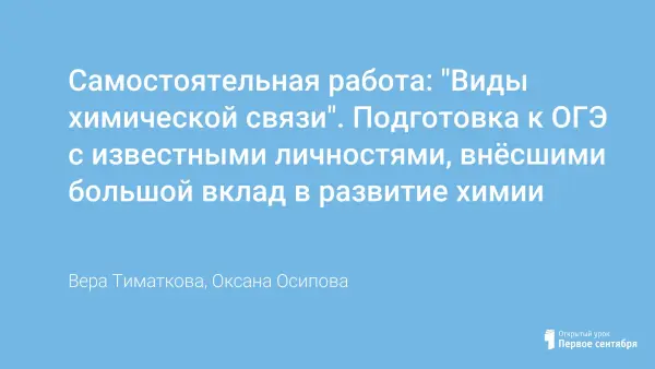 Самостоятельная работа: "Виды химической связи". Подготовка к ОГЭ с известными личностями, внёсшими большой вклад в развитие химии