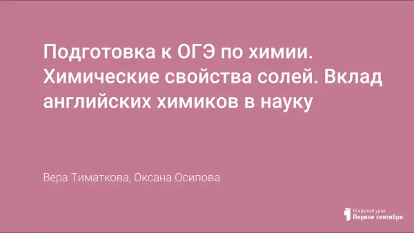 Подготовка к ОГЭ по химии. Химические свойства солей. Вклад английских химиков в науку