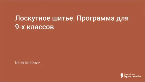 Программа элективного курса "Лоскутное шитьё" предназначена для предпрофильной подготовки обучающихся 9-х классов с ориентацией на художественно-эстетический и технологический профили, рассчитана на 18 учебных часов.