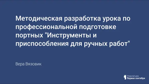 Тема "Инструменты и приспособления" одна из первых в изучении технологии ручных работ при обучении учащихся профессии "портной". Благодаря данной теме они знакомятся с инструментами и основными видами приспособлений в швейном производстве, от правильного выбора зависят которых в конечном итоге качество обработки, уровень производительности труда, эффективность работы в целом.