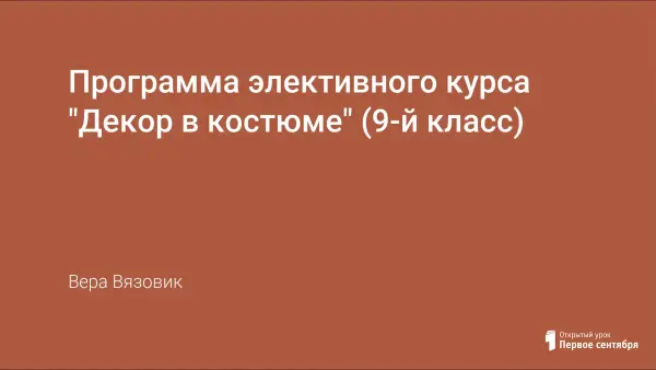 Программа предназначена для предпрофильной подготовки обучающихся 9-х классов с ориентацией на художественно-эстетический и технологический профили. Этот курс позволит полнее учесть интересы и профессиональные намерения старшеклассников в области декора. Курс поможет сделать первые шаги по пути познания искусства декора и приобщиться к мастерству создания красоты.