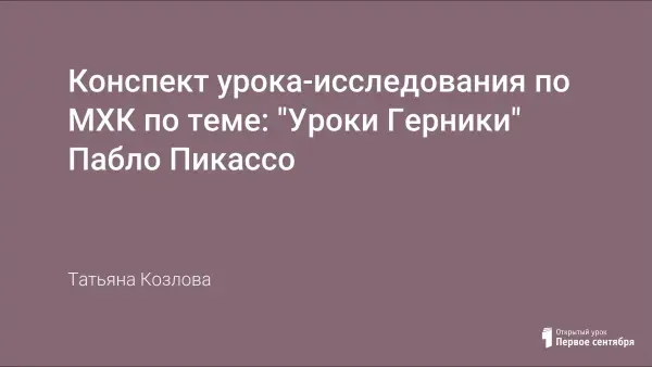 Имя Пабло Пикассо давно уже ассоциируется с самим понятием XXвека. Творчество художника - выражение триумфов и трагедий, жизненной силы и беспокойных исканий. Мало кому из художников удавалось столь емко и метафорично отвечать на исторические события "века-волкодава" и давать им свою беспощадную оценку. "Герника" Пабло Пикассо не столько рассказ о событиях 1937 года, сколько осмысление этих событий. Реконструкция "послания" великого мастера в творческом содружестве учителя и одиннадцитиклассников - уникальная возможность исследовать природу тотального зла, поразившего человечество в XX веке, способов победы над ним.