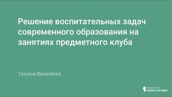Представлен конспект занятия "Решение воспитательных задач современного образования на занятиях предметного клуба".
