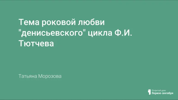 Тема любви в творчестве поэта или писателя всегда интересна более других, так как учащиеся пропускают ее через себя, свою душу. Они вместе с автором переживают, мучаются, радуются и отдаются всецело этому чувству. Материалы статьи могут использоваться преподавателями в качестве вступительного слова, при подготовке к литературной гостиной, посвященной теме любви в творчестве Ф.И. Тютчева, или к уроку, основной темой которого будет беседа о "роковой" любви великого поэта - Е.А. Денисьевой.