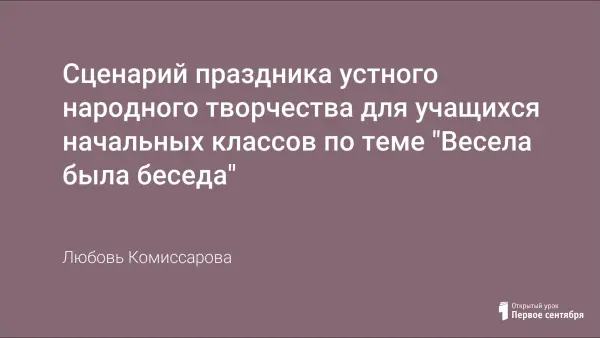 Из поколения в поколение передается народная мудрость, народное поэтическое слово, и эта преемственность может прерваться, если мы разучимся петь, плясать, играть, мечтать о будущем, ценить прошлое. Данный сценарий предлагается для внеклассной работы с учащимися начальных классов. Цель такой работы – в увлекательной, игровой форме помочь учащимся уважительно относиться к национальному наследию, воспитать уважение к русскому слову, обогатить словарный запас учащихся.