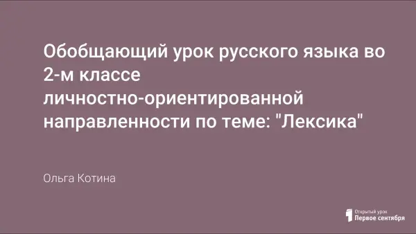 Обобщающий урок русского языка личностно-ориентированного направления во 2-м классе по теме "ЛЕКСИКА". Данный урок способствует расширению кругозора учащихся в области языкознания. На уроке широко применяются мультимедиа технологии.