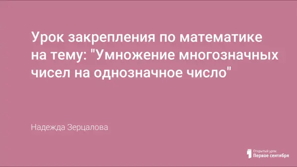 Материал был использован на уроке математики в 4-м классе как закрепление изученных знаний по теме: "Умножение многозначных чисел на однозначное число".